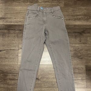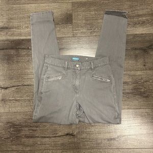 Gray skinny jeans with zipper detail pockets.