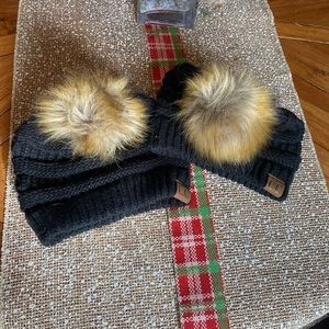 CC Brand Beanies - 2 Black with Tan Pom Poms on top, new with tags