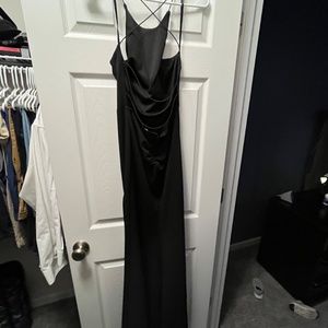 Windsor Presley Formal Halter A-line Dress in black - with slit and open back. Shown on 5’7 woman. Worn once, great condition.