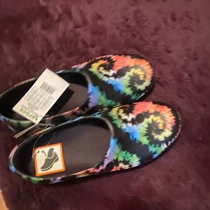 Women’s tie-dyed clog crocs size W11. Brand new with tags. Just in time for Christmas.