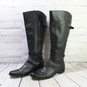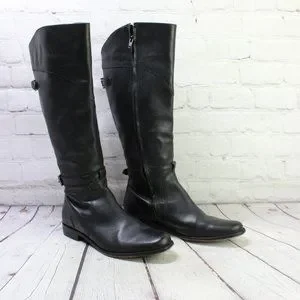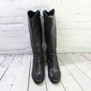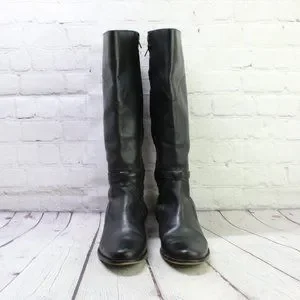 LL Bean Black Leather Side Zipper Knee High Riding Boots Size 9 Medium