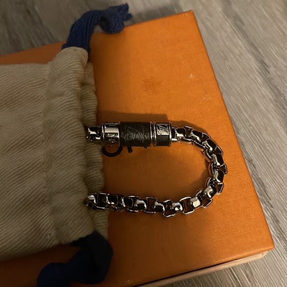 Purchased this bracelet at the Palm Beach Gardens LV store March 2021. Never wore bracelet. Only tried it on in the store. Bracelet measures 7.5 inches, unisex and come with box and dust bag.