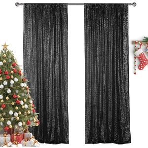 Black Sequin Curtain Set