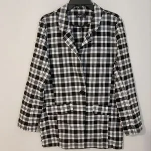 Rue 21 Plaid Print Black And White Long Sleeve Blazer Jacket Size M