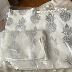 Cream/silver foil (has light pinkish tint in certain light) pineapple print