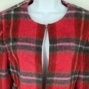 Cross Country Wool Mohair Coat Womens Size 10 Red Plaid Loose Fit Open Cardigan