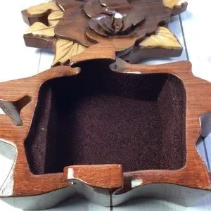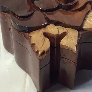 Hand Carved Multi Tone Wood Rose Puzzle Trinket Box