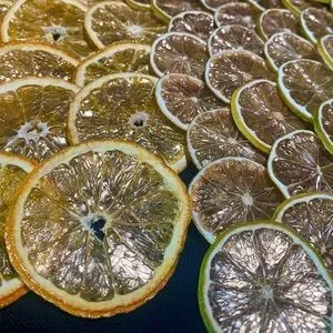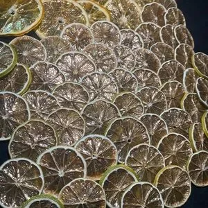 Dehydrated orange and lime wheels, dusted in 100% edible gold powder✨