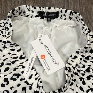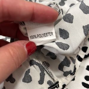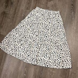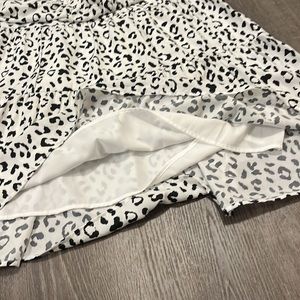 White skirt with black leopard print. Flowy. Lined. Never worn! Elastic waist.