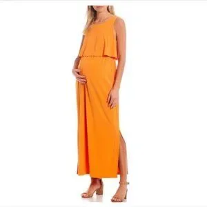 HOST PICK Alex Marie Maternity Nursing Tangerine Orange Maxi Dress size S