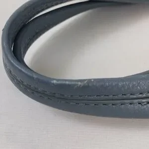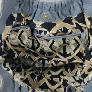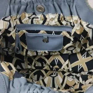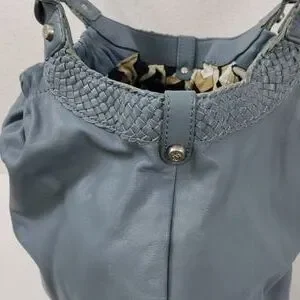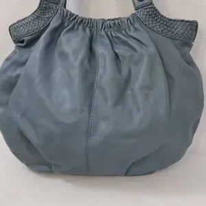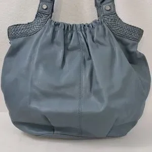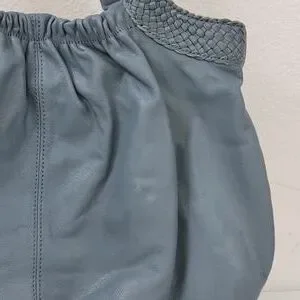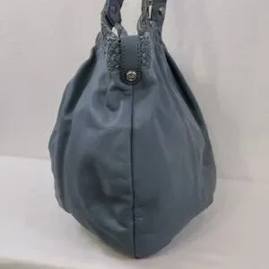 Allison Scott Blue-Gray Pleated Leather Shoulder Bag Braided Accent Trim.