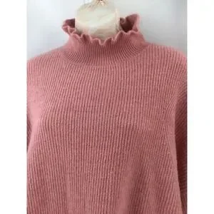 Halogen Sweater Women Size X1 Wool Blend Ruffles Neck Blush