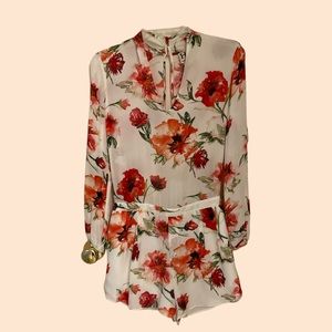 Haute Hippie silk floral romper shorts, long sleeves, v-neck. Darling! Size XS