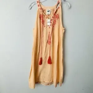 Anthropologie Mermaid Sheer Cover Up Peach Embroidered Tank Dress