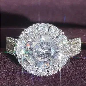 NEW 925 SILVER ROUND DIAMOND HALO RING💍