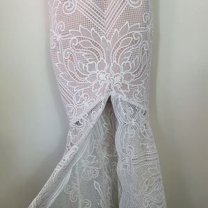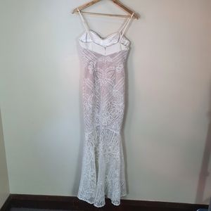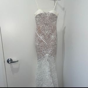 Sheike lunar lace gown maxi dress white Sze 8 floral strappy RRP$400