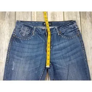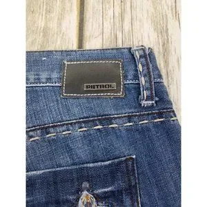 PETROL JEANS Denim Jenna Womens Size 29x34 Blue Distress’s Stud Casual Zip.