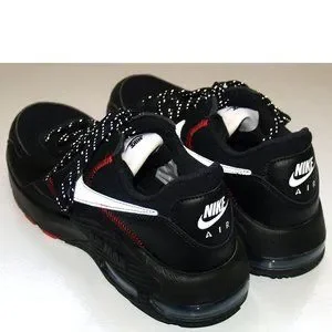 To contrast the black upper we see the addition of Sport Red and Metallic Silver on the branding, the exposed stitching on the side panels, and part of the rubber outsole. White tongue tags with black Nike branding on the heels and a black rubber midsole wrap things up on this Nike Air Max Excee.