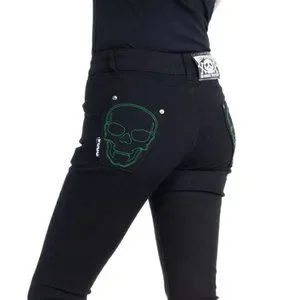 New with tags unisex skinny pants.Bad to the bone skeli jeans are back! Green Skeli-bone printed on a medium rise 98% cotton 2% Lycra jeans. featuring back pockets with coffin pockets embroidered with skulls.. Just choose the size you normally wear!
