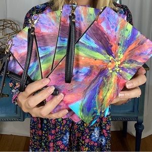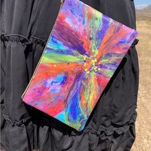 This was created by taking one of my paintings and had it printed on this vegan leather. These are perfect for the beach, I put my phone, cash and cards in it to keep it protected from the elements. Would be great for Vegas or a night out or just an insert in your purse!