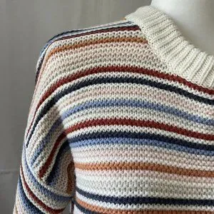 VGUC. Minimal wear. Chunky knit sweater. Striped crewneck. 525 America women’s size small. No holes or stains. Smoke free home.