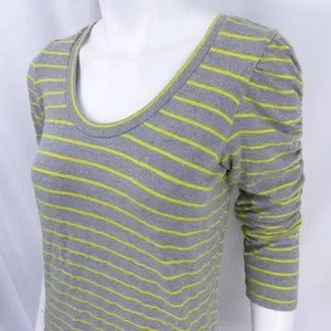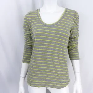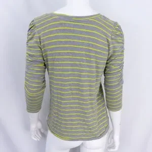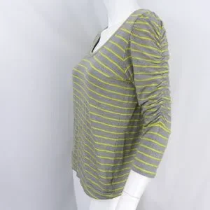 Anthropologie Large Dolan Scrunch Top Yellow Gray Striped Viscose Stretch