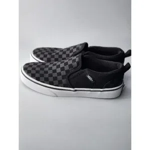 Vans Big Kid's Black Checkerboard Slip-On Sneakers Shoes Size 4