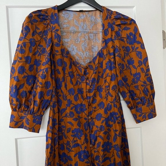 Zara Brown Blue Floral Printed Poplin Dress XS Blogger Favorite NEW with tags