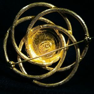 This 1960's Original by Robert Brooch is a Rare beauty! Flower shaped design with one round center faux Pearl, surrounded by etched gold swirls. You won't be disappointed when you see this piece up close, it is really a beauty! Brooch measures approximately 2" in diameter, and about 1" high. Signature logo on back. Excellent condition.