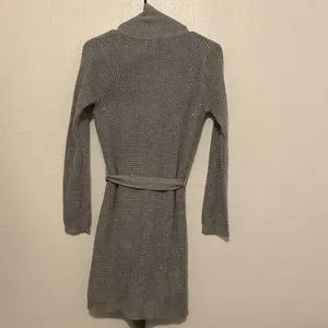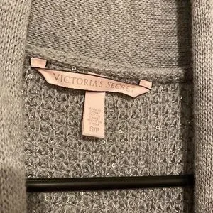 Victoria’s Secret Robe with Sparkle- Grey/Silver. Beautiful sweater type robe or cardigan. Long sleeved with matching tie belt. On the outside there are no snags! No rips, tears, holes or stains. Never worn but has been laundered.