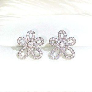 New 925 Silver Diamond Flower Studs