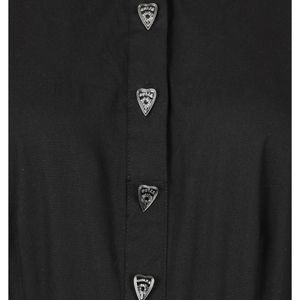Fake placket in center front - opens from chest up, can be worn unbuttoned