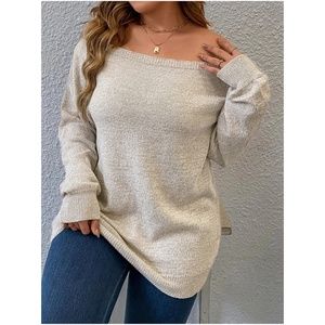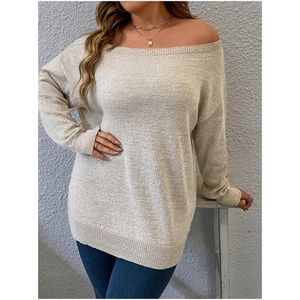 Plus Khaki Off Shoulder Sweater Top