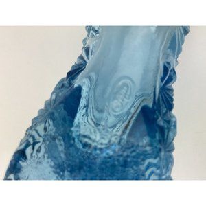 *Vtg Fenton Art Glass Slipper Shoe Daisy & Button Cat Head Light Blue Figurine