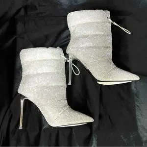 New in box, Steve Madden Rhinestones Silver Puffer Stiletto Dress Booties