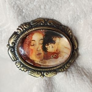 NEW! Mother and child brooch from the Klimt painting. Glass cabochon on a metal finding. Handmade, as pictured. Thanks for looking! 😀