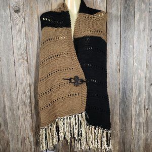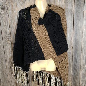 NEW Black Brown Colorblock Hand Knitted Shawl Scarf Wrap Boho Hippie Handmade