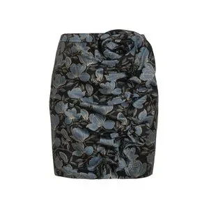 This mini skirt is chic and elegant in blue brocade with HATHAIRAT’s signature rose drape detail giving the skirt a classic and feminine look. This skirt can be worn with a black top and jacket. It is elegant, and chic yet modern and sexy. The skirt is fully lined with an invisible center back zipper.