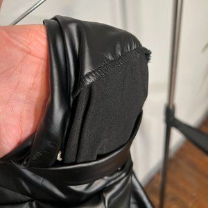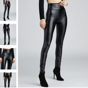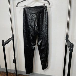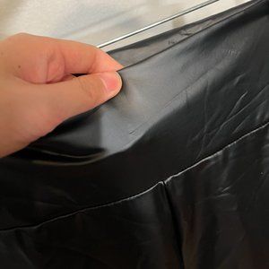 Change up your night out look with high waist liquid leggings that offer a flattering wide waistband, a form-fitting design, and is composed of a faux leather fabric that creates a luxe finish. Complete the outfit with a lace bustier and statement earrings.