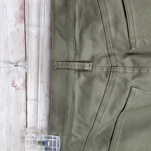 Loft, Olive Green, 0337, Women's straight mini skirt. Back split, belt loops, brass buttons down the front of the skirt and back pockets, In excellent condition, no grease spots, pilings, nor pulls, SZ 4.