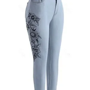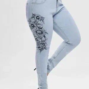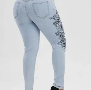 Plus Size 18 Women's Light Wash Floral Side Skinny Jeans Women's 2X New 18