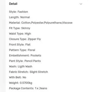 Package Contains: 1 x Jeans