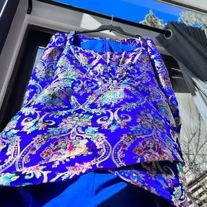 Lavish Alice: Jacquard Corset Embroidered Chinese Cobalt Wrap Mini Dress