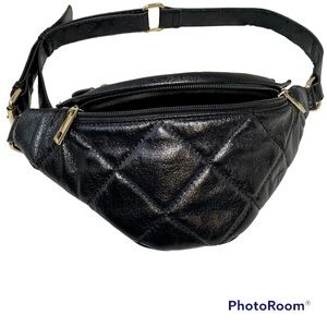 SOLD Quilted Vegan Faux Leather Belt Bag Adjustable Fanny Pack Metallic Black