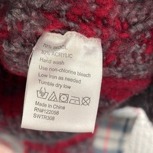 Free People / Beautiful snowflake print / wool sweater / size medium but fits like a small because it was accidentally thrown in the dryer and shrunk a little. Very thick and cozy! Great quality / only worn a couple times!