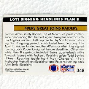 1991 Pro Set #348 NEW/(Plan B Free Agent) Ronnie Lott
