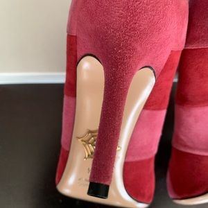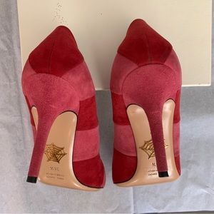 Charlotte Olympia DESIREE IN STRIPES Suede Pumps Rouge/Dark Pink SZ 8.5/EU 38.5