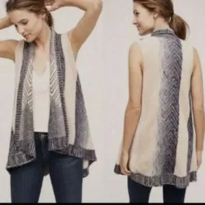 Anthropologie Sleeping on Snow Mabli Wool Blend Sweater Vest Beige Blue Size XS/S.