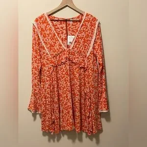 Pictured is a new with tag Free People bohemian style dress in the size XS. This item is super cute and comfy. The floral print and lace detail is gorgeous.