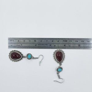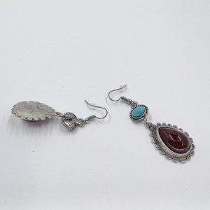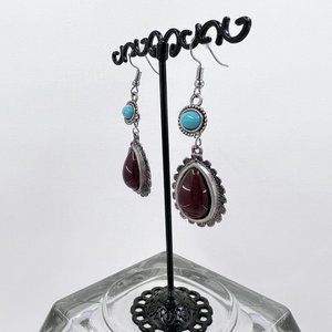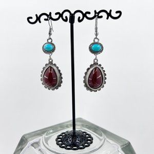 New / Hand Crafted - Southwestern Vibes Turquoise & Dark Red Dangle Earrings